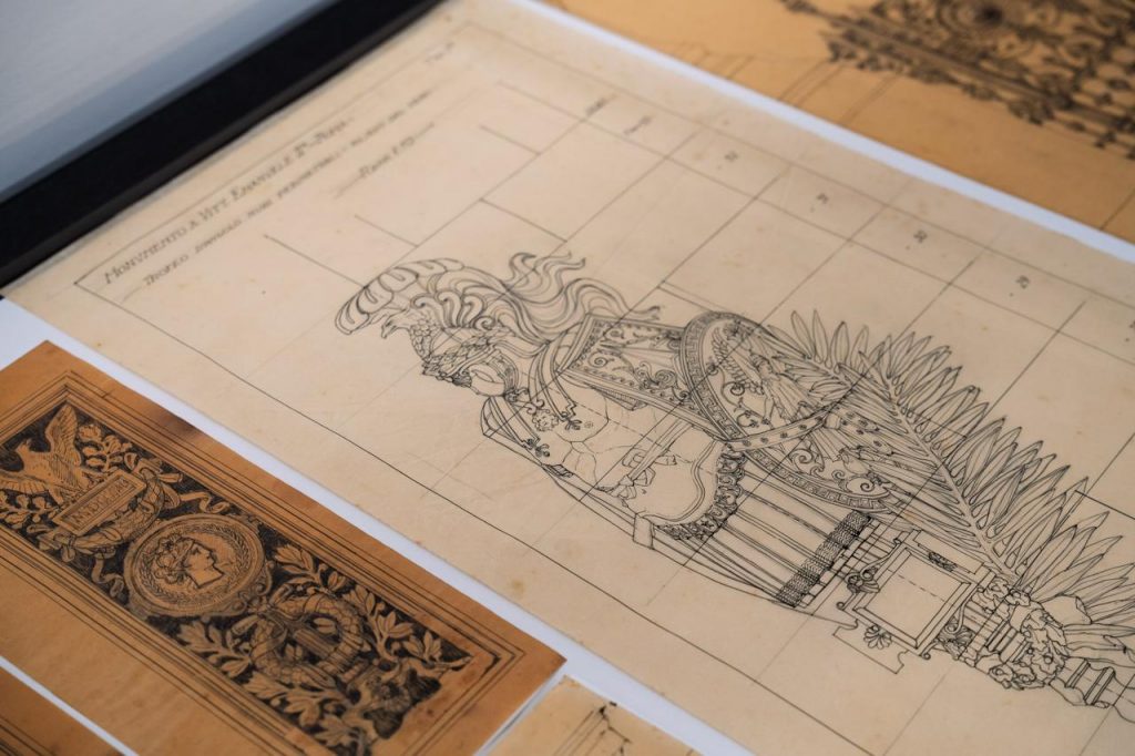Il percorso fa seguito a un importante intervento di salvaguardia e riordinamento avviato nei primi mesi del 2024. Il trasferimento dell’imponente archivio di disegni tecnici, bozzetti e schizzi dalla storica ala Brasini del Vittoriano all’Archivio centrale dello Stato – reso possibile grazie alla collaborazione dell’Istituto per la storia del Risorgimento italiano con la Soprintendenza archivistica e bibliografica del Lazio, con ViVe con il supporto della Direzione generale Archivi del Ministero della Cultura – ha permesso infatti di mettere in sicurezza oltre 6.000 documenti e di restituire al pubblico una selezione di pezzi straordinari, molti dei quali poco noti.