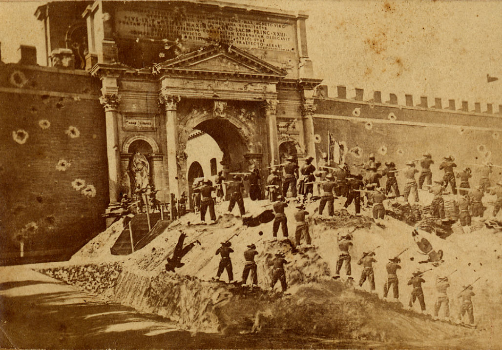 - Fondo stampe e disegni: all’interno di questo fondo eterogeneo (circa 30.000 tra incisioni, disegni e altri materiali figurativi) sono presenti molti materiali fotografici. Si tratta in genere di vedute raffiguranti gli scenari del Risorgimento (come nel caso delle fotografie scattate a Palermo nel 1860 poco dopo lo sbarco nell’isola dei Mille di Garibaldi), di panorami delle prime imprese africane o di fotografie scattate durante la Prima guerra mondiale;